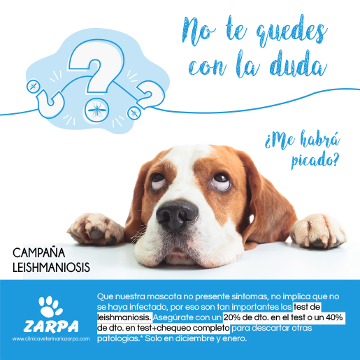 Para mantener un mejor control de la salud de tu perrito, todos los años realizamos en la Clínica Veterinaria Zarpa una campaña durante diciembre y enero con un descuento para realizar el test de Leishmania.
